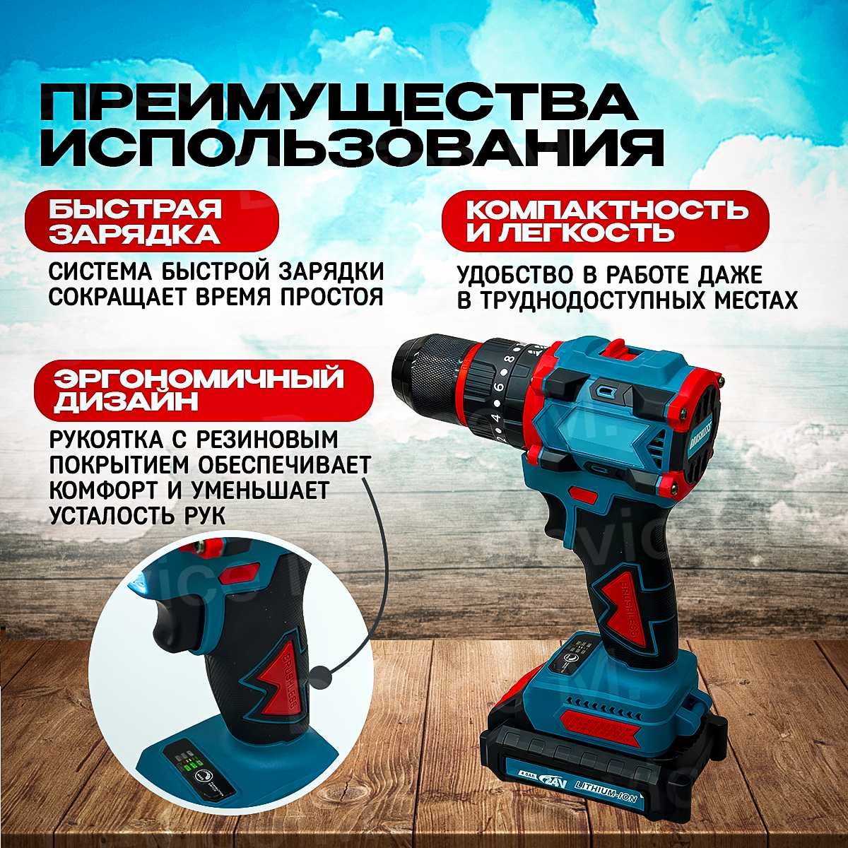 34 отзывов пользователей o Mabar Дрель-шуруповерт ударный бесщеточный (24В)