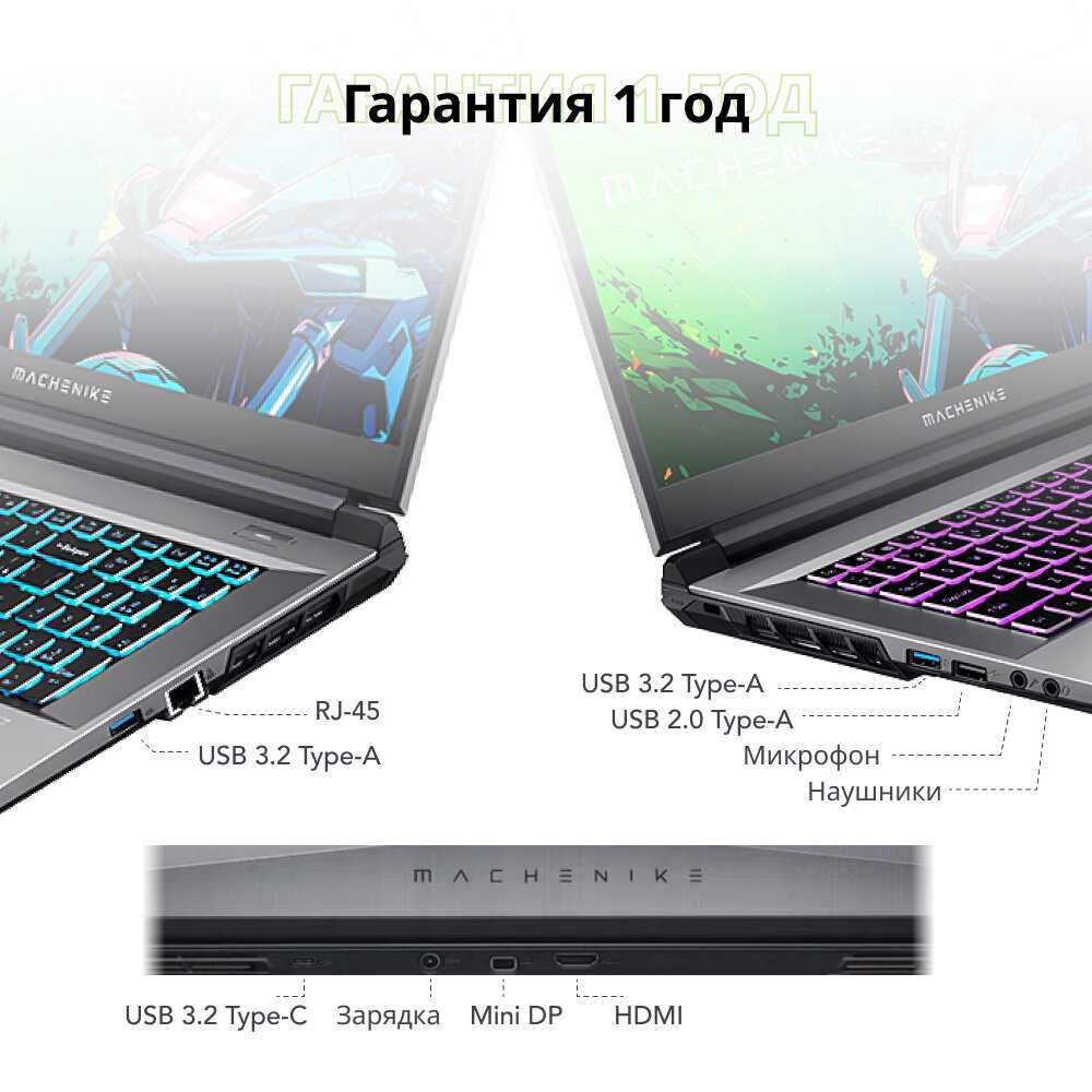Корпус сочетает алюминиевую крышку и пластик с текстурой под металл, что снижает вес до 2.3 кг. Клавиатура с RGB-подсветкой и отдельной цифровой панелью удобна для печати, но центральная часть прогибается при нажатии, а пробел иногда не срабатывает при ударе по краю. Тачпад большой, но из-за люфта случайные касания приводят к «фантомным» кликам. Разъемы (2xUSB-A, HDMI, Type-C) расположены рационально, но отсутствие Ethernet и всего два USB порта вызывают нарекания. Отдельный минус — блок питания: компактный 150-ваттный адаптер перегревается до 60-70°C, а кабель легко повреждается у основания. Для мобильного использования рекомендуют охлаждающую подставку: без нее нижняя панель ощутимо нагревается.