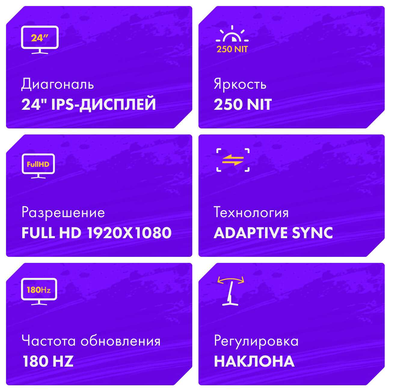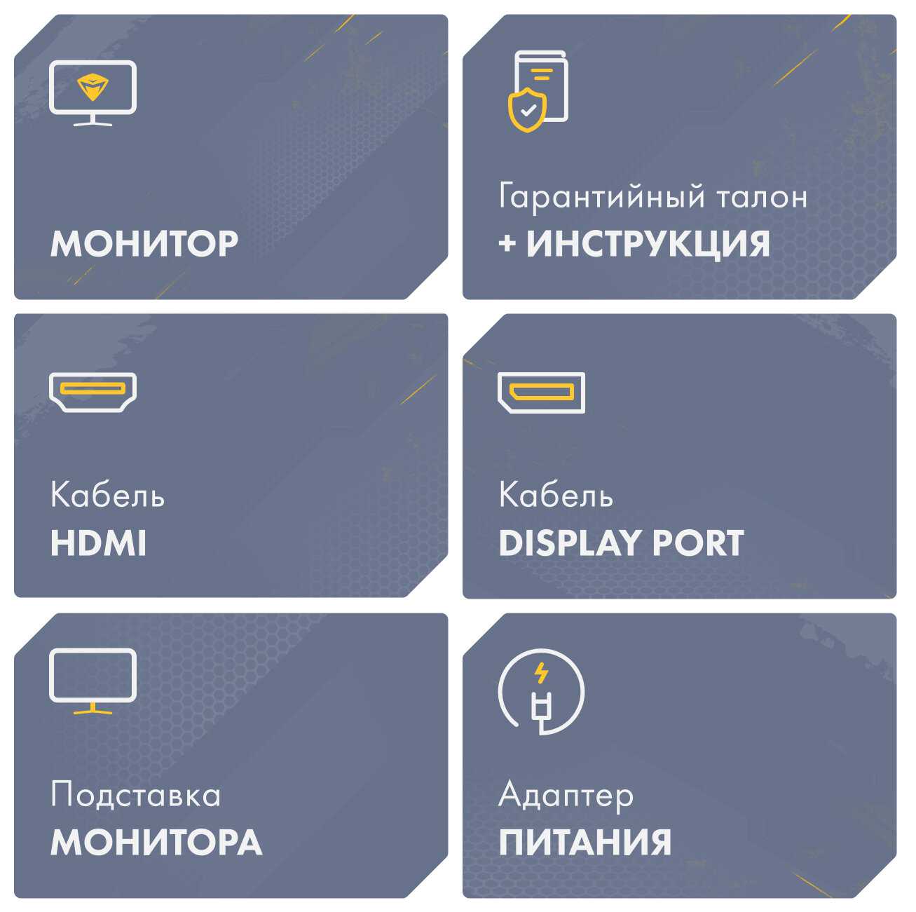 - В коробке HDMI, DisplayPort и кабель питания, что избавляет от допокупок; DP поддерживает полную герцовку (180+ Гц).