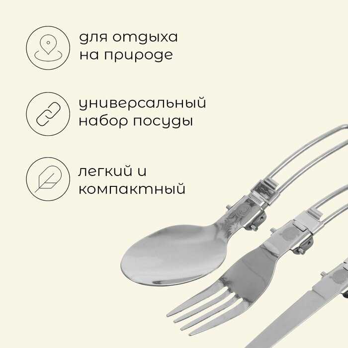 Дополнительная информация : | Складные туристические приборы из нержавеющей стали, удобны для использования на природе. |