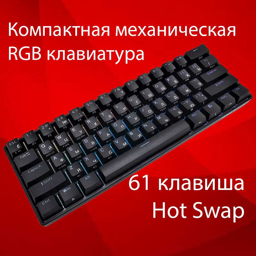 - + Формат клавиатуры - мое почтение. Очень удобно, особенно для диванного гейминга или когда мало места. По ощущениям надежная, клавиши нажимаются четко. Подсветка радует глаз.