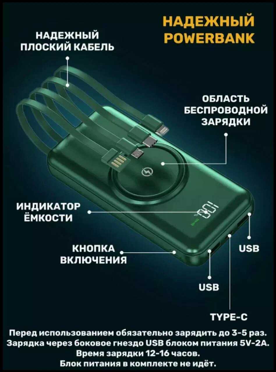 Отзывы о Повербанк внешний аккумулятор Повербанк 20000 мАч с беспроводной зарядкой