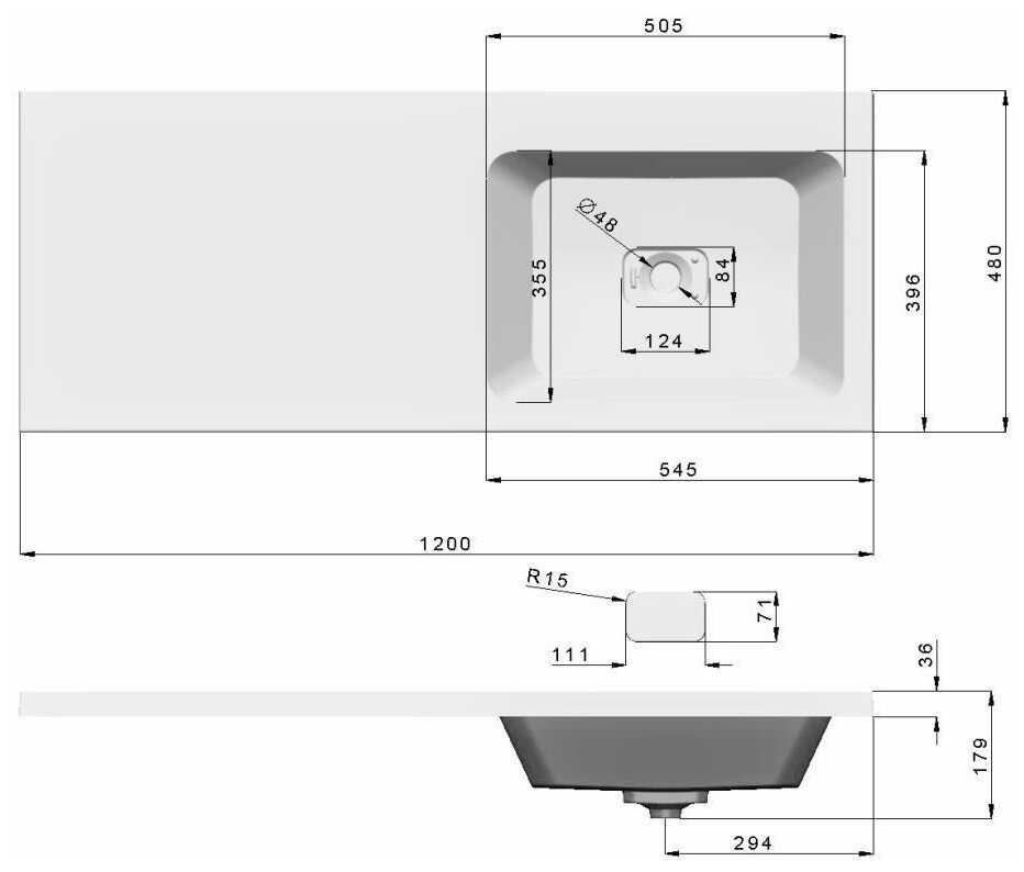 | Расположение размеченного отверстия под смеситель : | в центре |