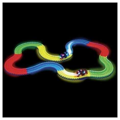 - Гибкие элементы трека позволяют строить трассы с горками и подъемами, развивая пространственное мышление и креативность у ребенка.