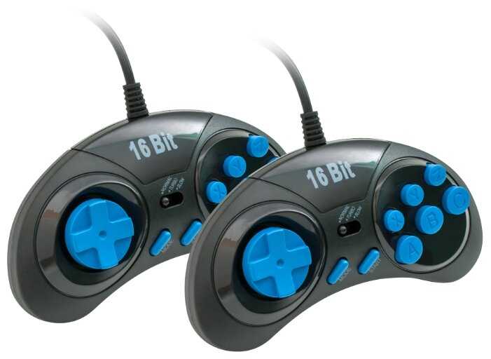- В комплекте два джойстика с классическим 6-кнопочным дизайном для Sega-игр.