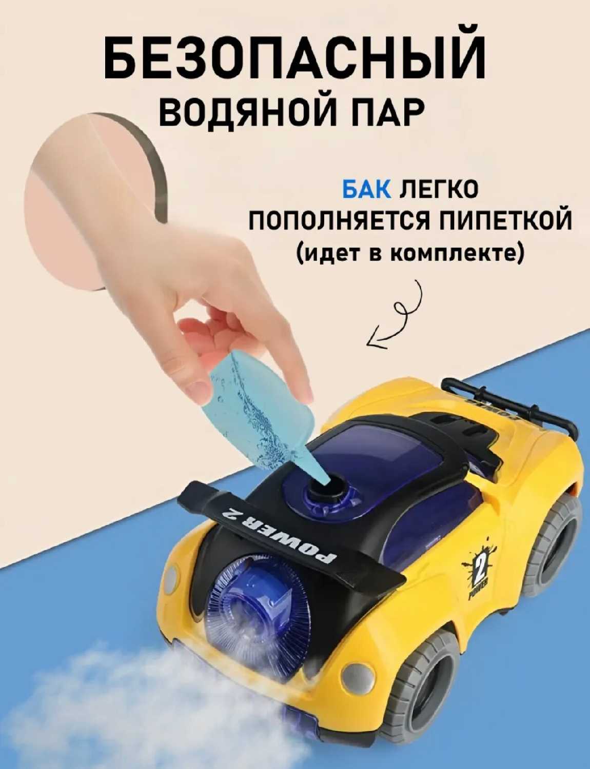 - + Симпатичная машинка, хорошо передвигается от препятствий, вся мигает, особое восхищение - пар из выхлопной трубы))))
