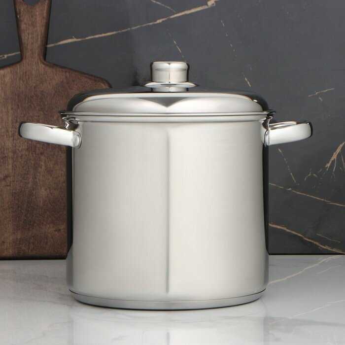 Одно удовольствие пользоваться. Поместится спокойно средний цыплёнок (~1,5 кг) и получится достаточно много (~3+ литра) бульона. Капсульное дно и возможность использования на любом типе нагревающей поверхности. - - Непросто отмыть.