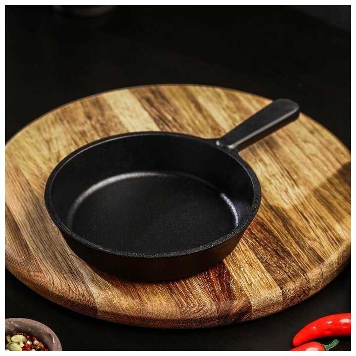 - + После проведения подготовки к использованию, попробовала пожарить яичницу. Ничего не пригорело. Сделано из экологического материала-чугун.