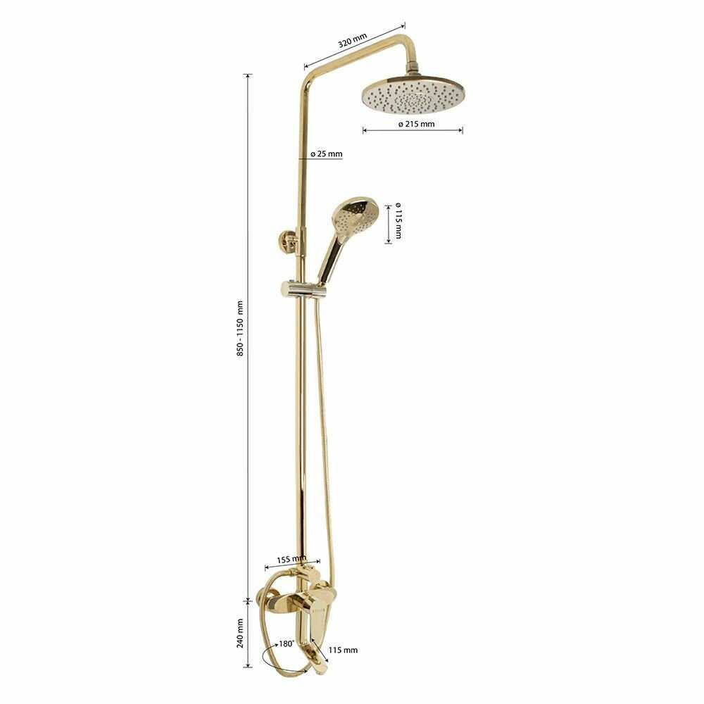 Высота стойки для душа : | 1150 мм |