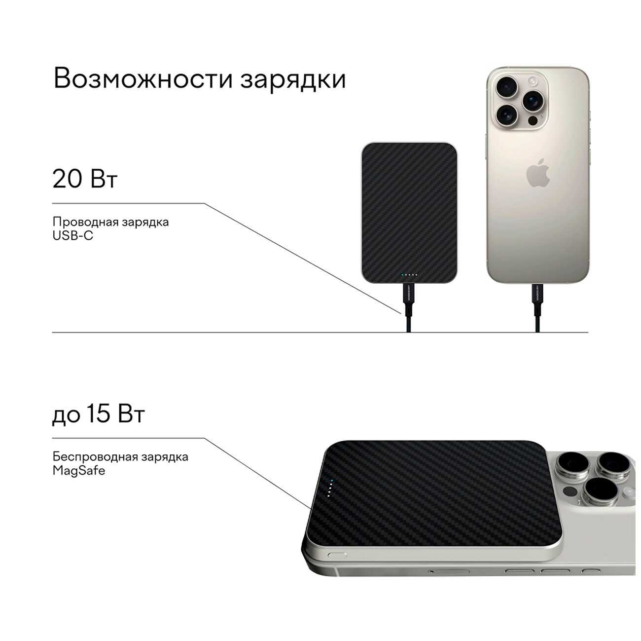 отличный повербанк! заряжаю 16 про на 2 раза до 50 процентов с 13-15 поцентов хватает! заряжаю раз в 2 дня…использую когда с работы домой еду! материалы тактильно огонь, арамид матовый такой, жирные следы не остаются! Сам аккум заряжается за 2 часа плюс минус, что в целом быстро, оригинальный например так же по времени, а ёмкость ниже…Советую тем, кто кошелёк магнитный носит, а еще можно закрепить на магнитный держатель вместе с телефоном и конструкция не падает! нагрев умеренный, но греет сильнее оригинала например, но и мощность до 15 Вт как заявлено!