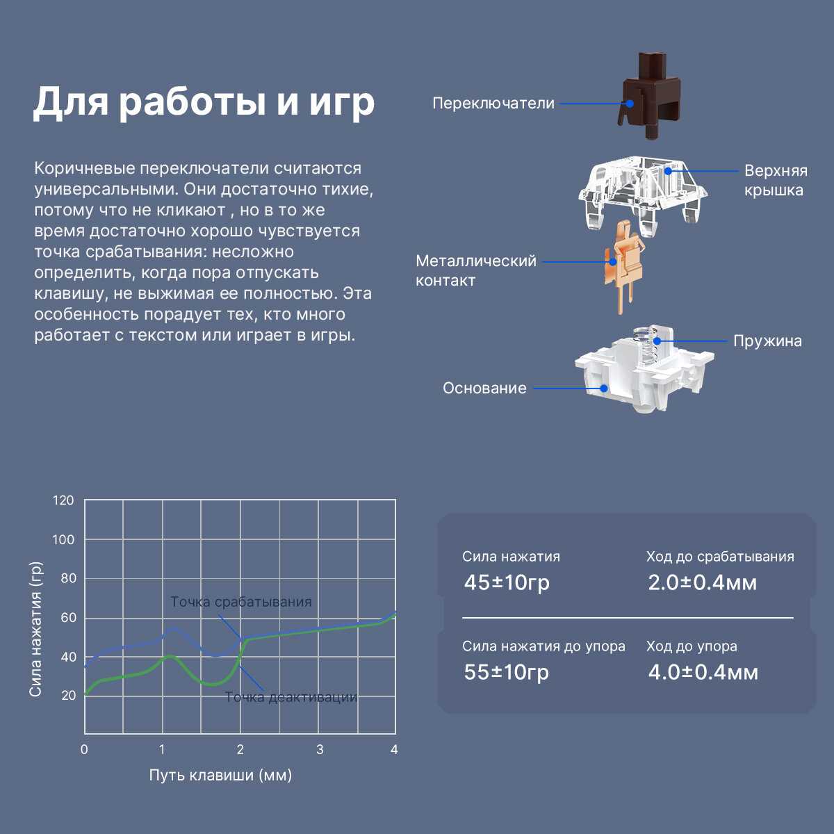 - + дизайн, лёгкие на нажатию, тихий и приятный клик