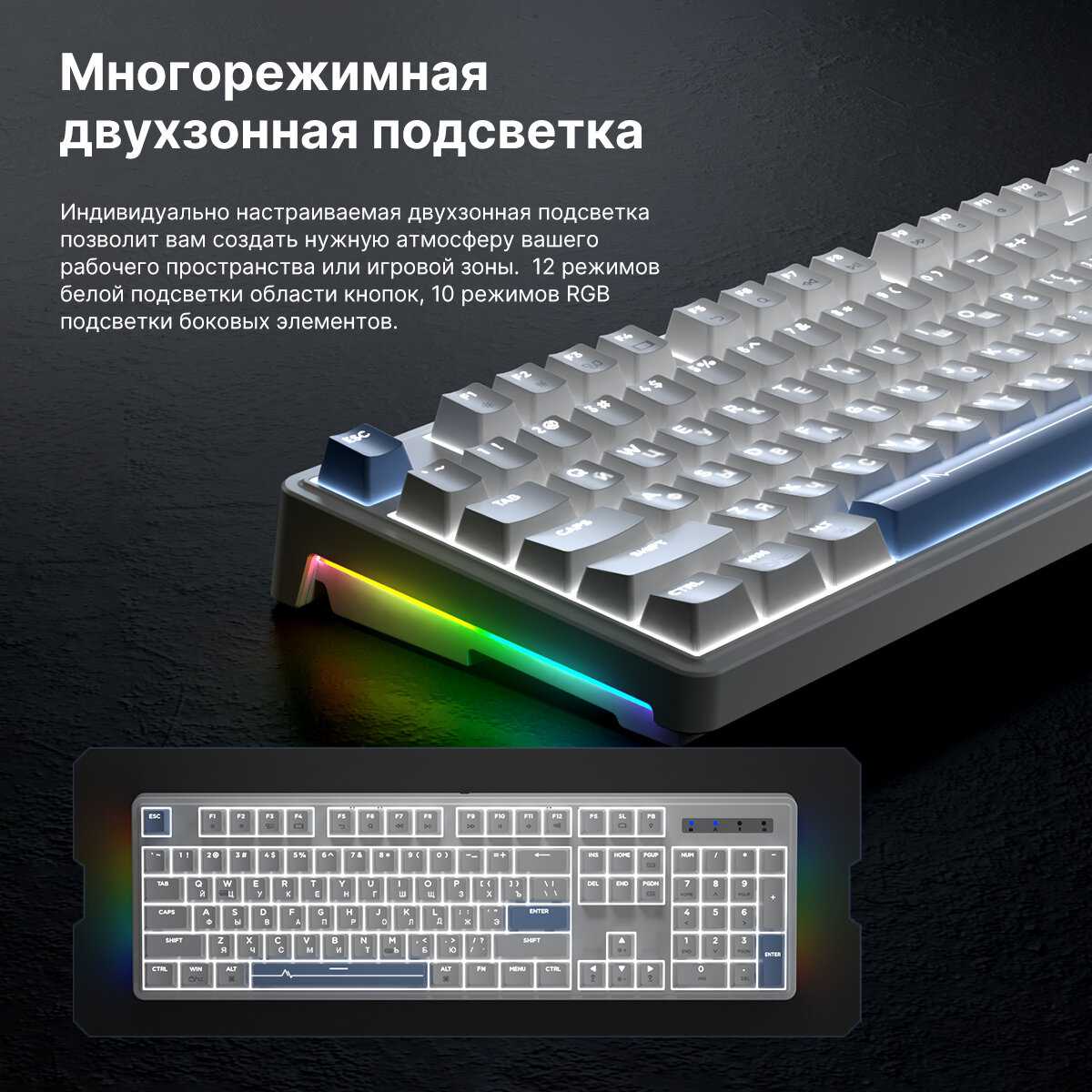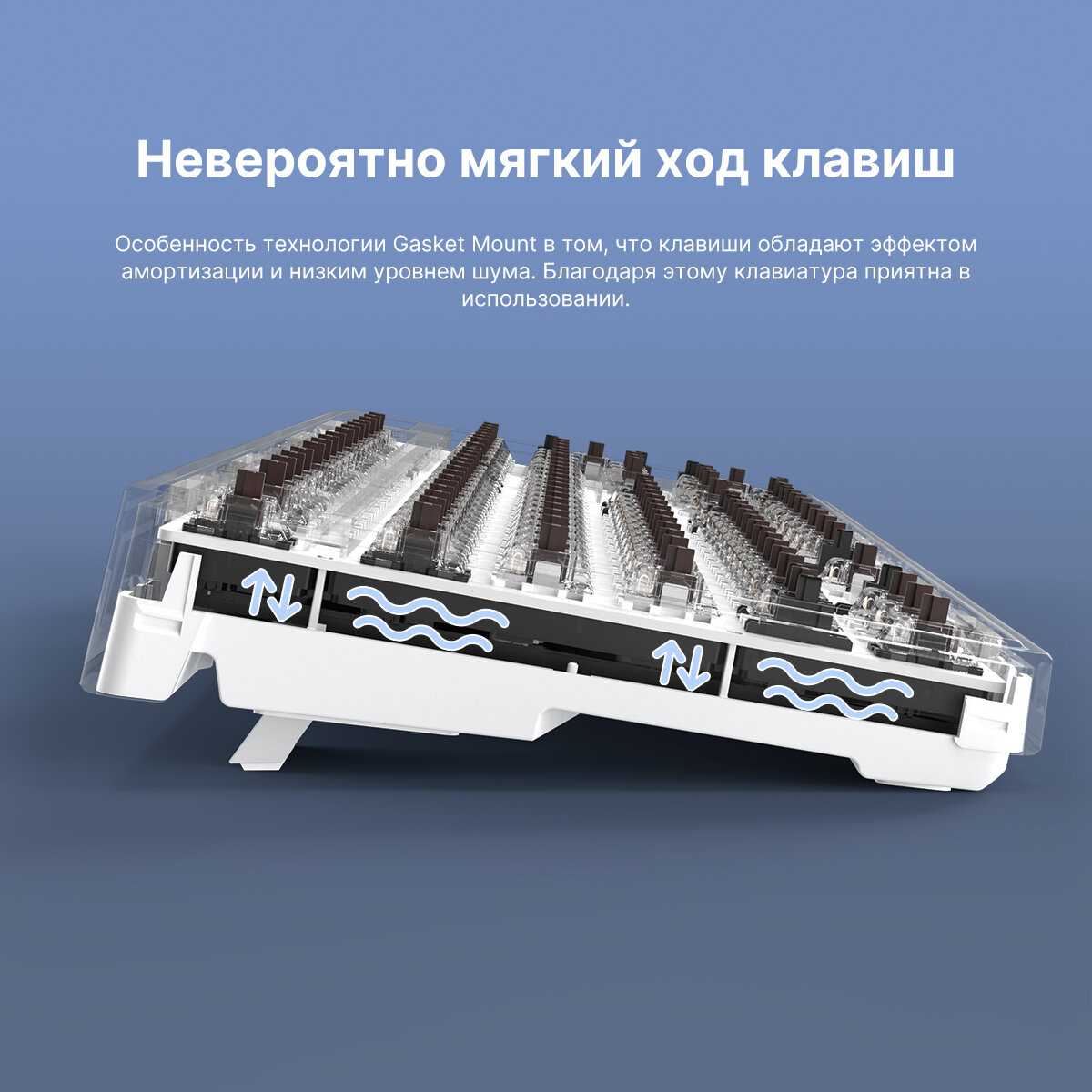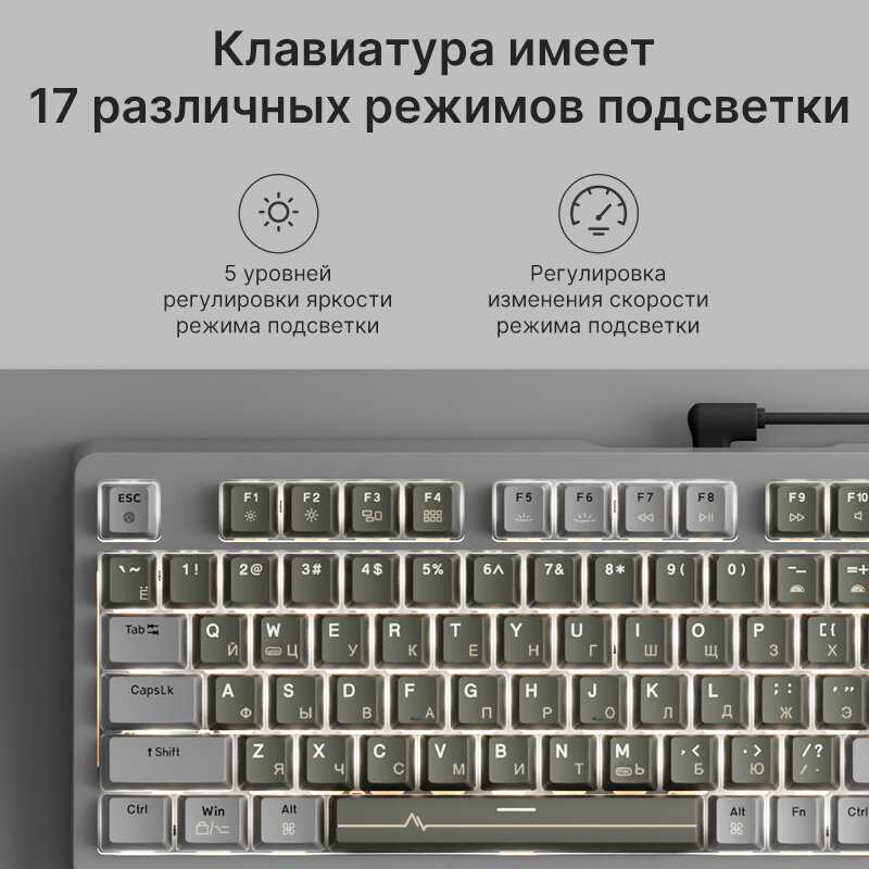 - + очень классно сделан тайминг, кнопки приятно нажимаются, подсветка не выжигает глаза что надо тем кто любит однотонные светящиеся буквы, кнопка громкости очень удобная и приятная тактильно, клава наверное топ за свои деньги