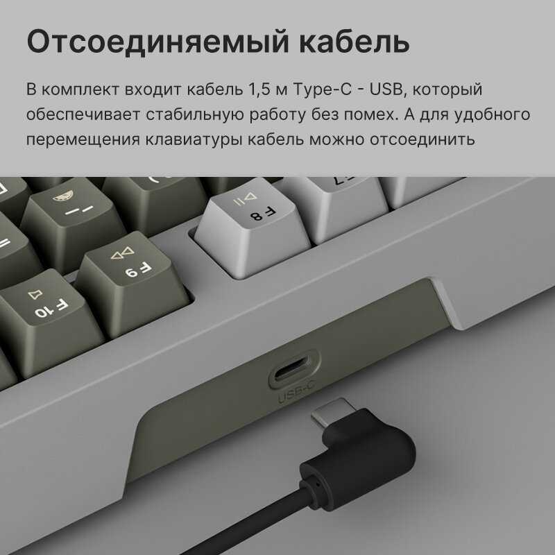 - + Очень милая клавиатура, приятный тайпинг, в комплекте вилка для снятия колпачков, подсветка, всё по красоте.