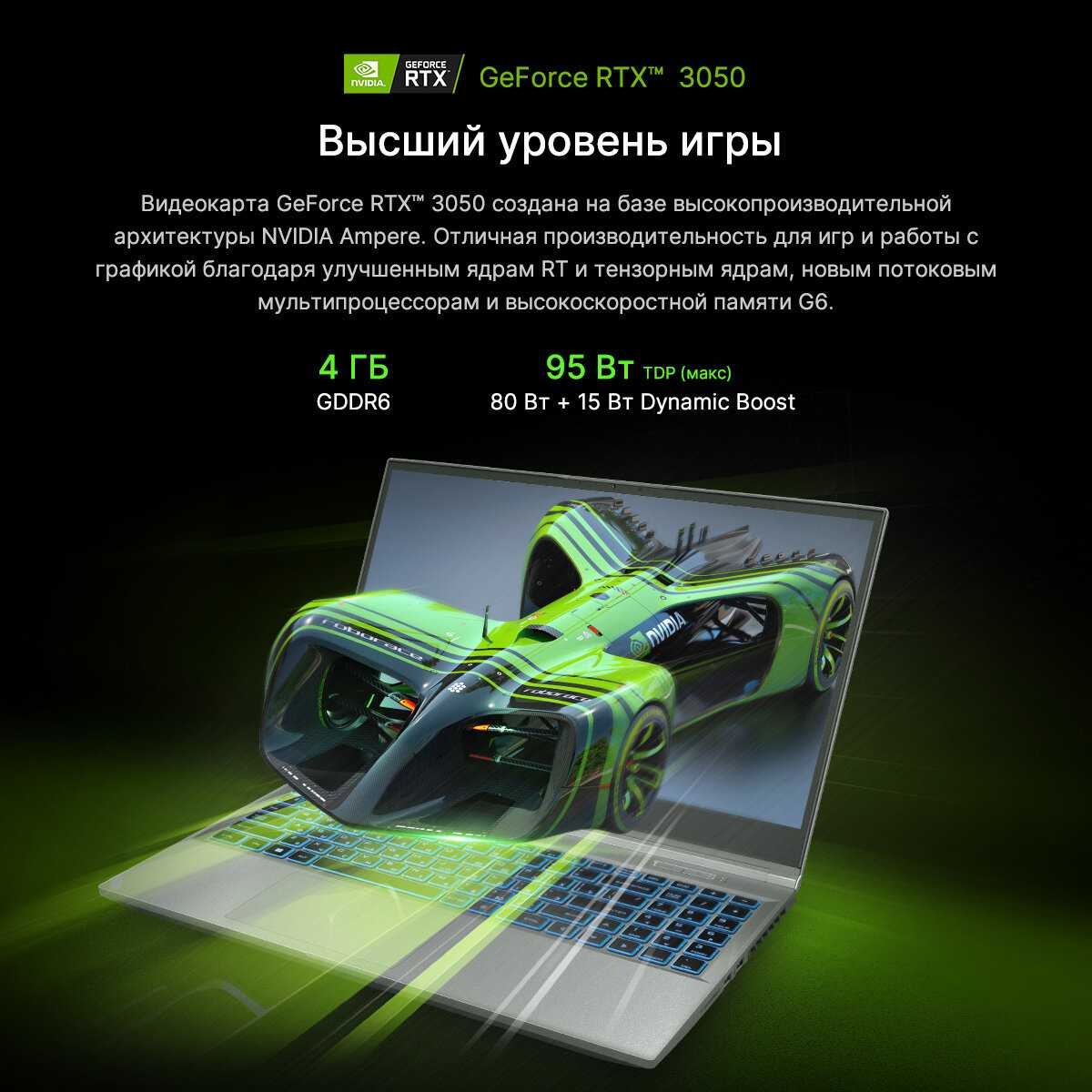 Ноутбук уверенно работает с видеомонтажом в разрешении Full HD, 2D/3D графикой и фоторедакторами (без профессиональной цветокоррекции). В играх типа The Last of Us Part 1 или Cyberpunk 2077 на средних настройках обеспечивает 40-60 FPS, но для стабильности может потребоваться снижение текстур или активация DLSS/FSR. Видеокарта RTX 3050 с 4 ГБ памяти ограничивает запуск некоторых AAA-проектов на ультра-настройках, особенно при использовании трассировки лучей. -