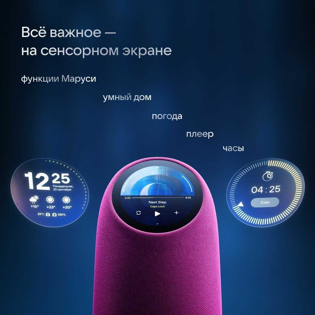 Голосовая активация работает, но имеет ряд особенностей. Маруся откликается не только на имя «Маруся», но и на уменьшительно-ласкательные формы, такие как «Маруська» или «Руся». Однако помощник требует паузы после команды активации и не поддерживает режим шепота, в отличие от Алисы. Микрофоны иногда могут ложно срабатывать на имя «Алиса» или не реагировать на команды, после чего колонка может просто отключиться без ответа. -