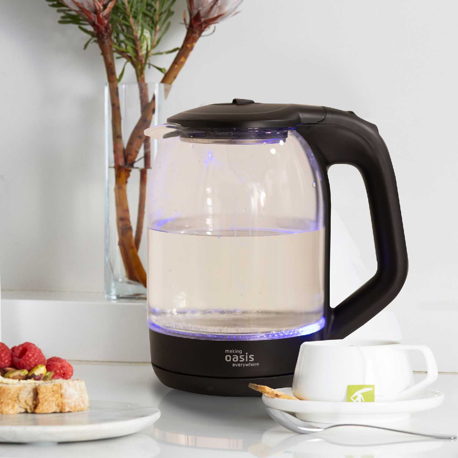 - Прозрачная стеклянная колба обеспечивает визуальный контроль уровня воды без необходимости открывания крышки.