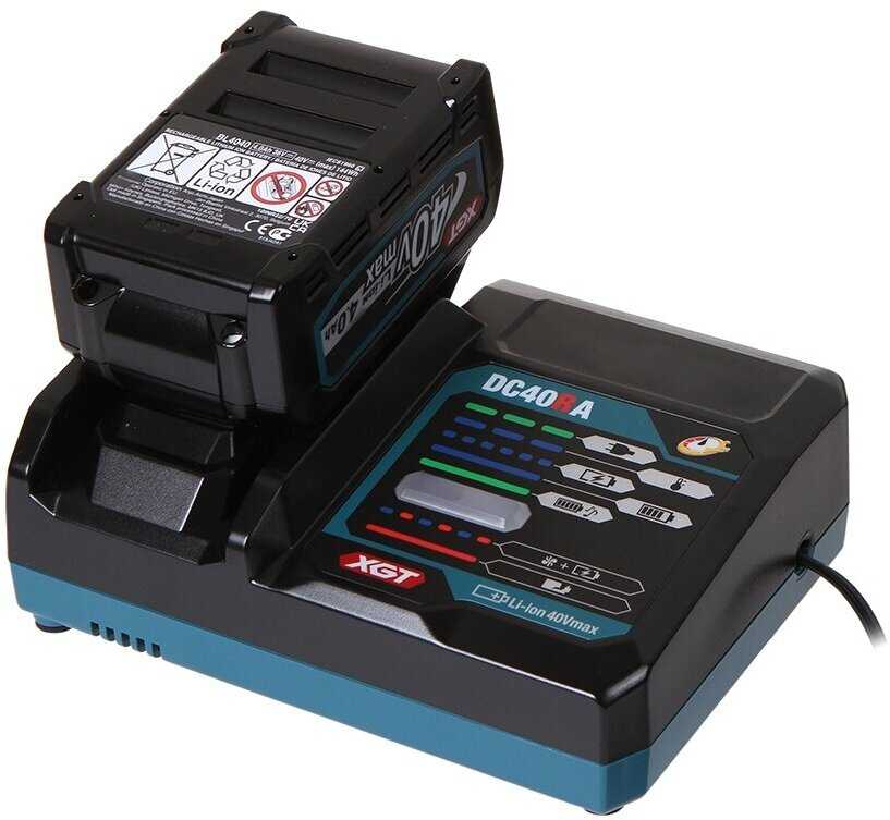 Зарядное устройство DC40RA обеспечивает быструю зарядку — полный цикл от 0 до 100% занимает около 30-60 минут. Процесс заряда сопровождается активным охлаждением с помощью двух вентиляторов. Автоматическое отключение после завершения заряда предотвращает перезаряд и продлевает срок службы аккумулятора. -