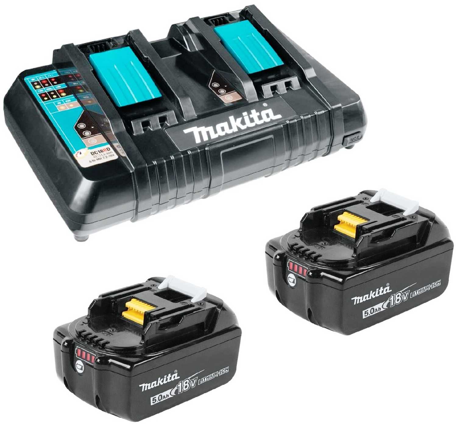 | Дополнительная информация : | в комплекте: зарядное устройство DC18RD - 1шт аккумулятор BL1850B - 2шт, время заряда 45 минут |