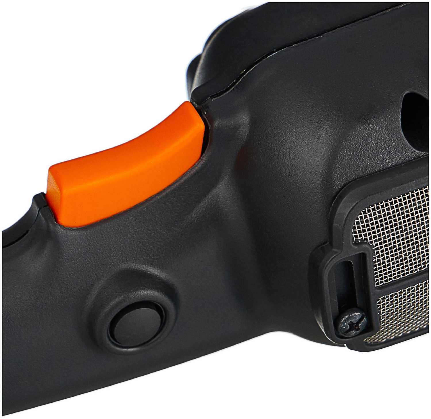 - Три точки хвата (основная рукоятка + боковой упор) обеспечивают контроль при работе одной или двумя руками.