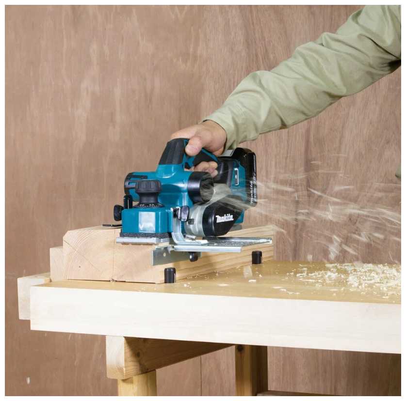 Главное преимущество перед сетевыми рубанками это отсуствие провода который можно повредить при строгании. И ещё строгать можно практически в любом месте и при отсутствии электросети. Безщеточный двигатель выдаёт хорошую мощность.