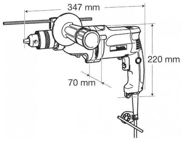 | Комплектация : | дрель, дополнительная рукоятка, ограничитель глубины сверления |