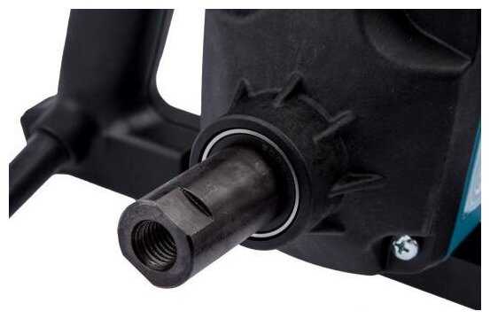 Изначально, посадочное место рассчитано на миксер с резьбой м14, но можно установить патрон от дрели, чтобы использовать любые насадки для размешивания. Ещё можно закрутить патрон от перфоратора и использовать быстросъёмные миксеры.