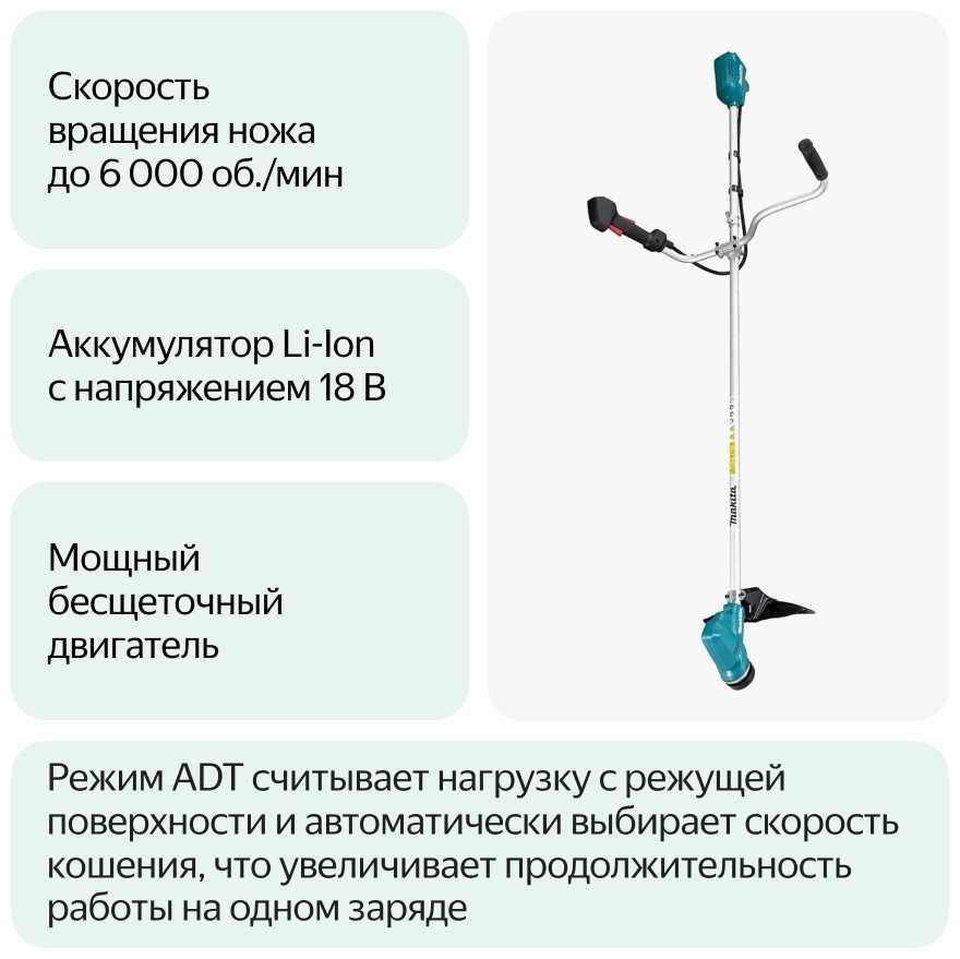 | Дополнительная информация : | кнопка реверса, 3 скорости кошения, режим ADT (автоматический выбор скорости), защита от перегрузки, защита от переразрядки, светодиодный индикатор |