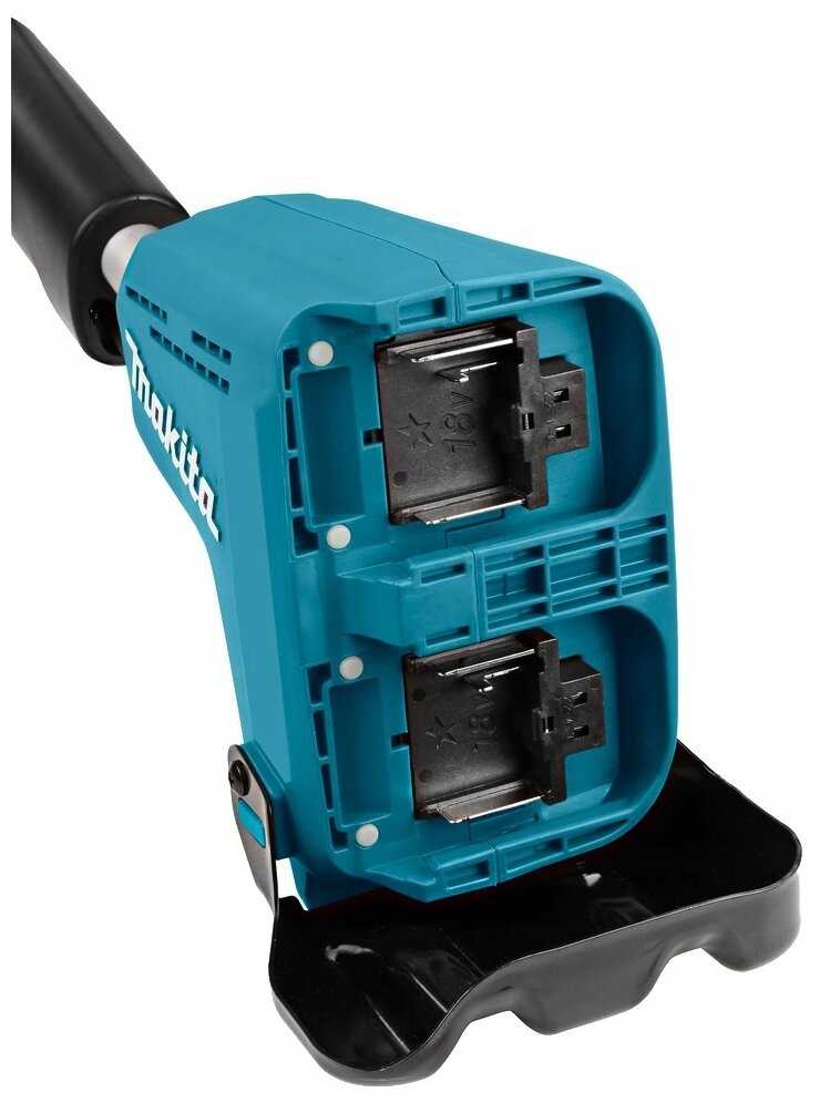 Работа на двух аккумуляторах LXT 18V раскрывает сильные и слабые стороны: штатных АКБ 3.0–4.0 А·ч хватает на 20–40 минут при интенсивном кошении (1–3 сотки), версий 5.0–6.0 А·ч — на 1–2 часа (до 8 соток). Зарядка парой в двухпортовом устройстве занимает 30–40 минут, что позволяет организовать цикличную работу с дополнительными батареями. Пользователи успешно применяют неоригинальные АКБ (Topon, Vortex), но отмечают риски брака "родных" блоков. Для участков свыше 6 соток обязателен второй комплект батарей. Энергопотребление не зависит от типа режущего элемента — леска и ножи расходуют заряд одинаково.