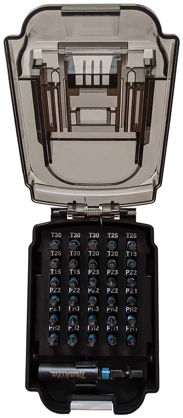 - Идеально входит в отсек для аккумулятора 18V в кейсе шуруповерта, экономит место и позволяет хранить биты рядом с инструментом (упомянуто многими пользователями, включая тех, кто использует с Makita 18V).