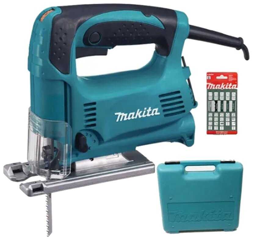 Мощность двигателя (от 450 Вт, точные параметры не указаны в отзывах) обеспечивает стабильную работу, но вызывает нагрев при длительном выпиливании сложных форм — в таких случаях пользователи рекомендуют делать перерывы. Глубина пропила, хотя и не рекордная, покрывает большинство бытовых задач. Отсутствие лазерной указки компенсируется точной разметкой, а система обдува стружки предотвращает засорение линии реза. Важный нюанс — совместимость исключительно с оригинальными пилками Makita: дешёвые аналоги резко снижают качество работы. Ключевым преимуществом остаётся соотношение функционала и цены: при минимальной комплектации лобзик предлагает качество бренда, прощающее отсутствие «наворотов» вроде подсветки или бесключевой замены оснастки.