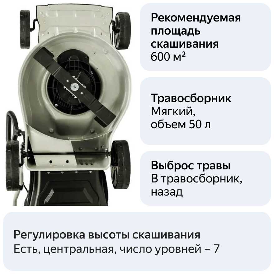 - дополнительные функции: возможность установки мульчирующей насадки