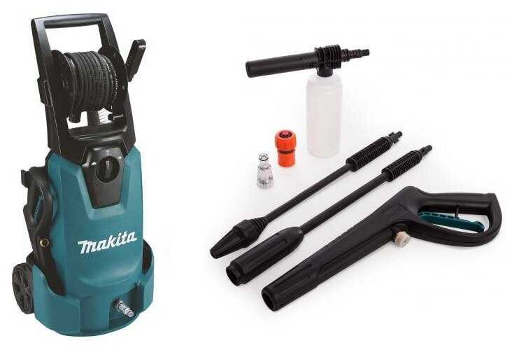 - + МАКИТА!! Хорошая мощность , качественный пластик, шикарный шланг (10м.) небольшой расход воды ,два режима роботы!