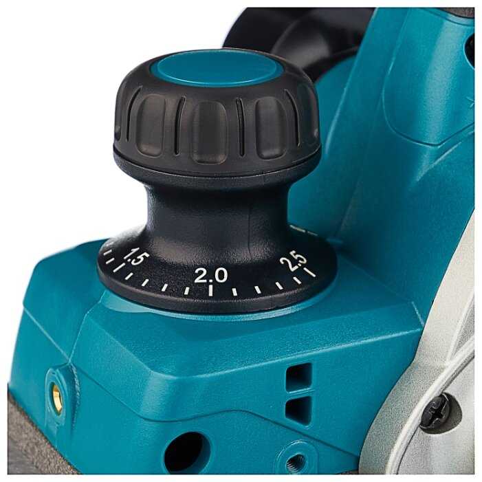- Регулировка глубины строгания (до 2,5 мм) позволяет точно дозировать усилие.