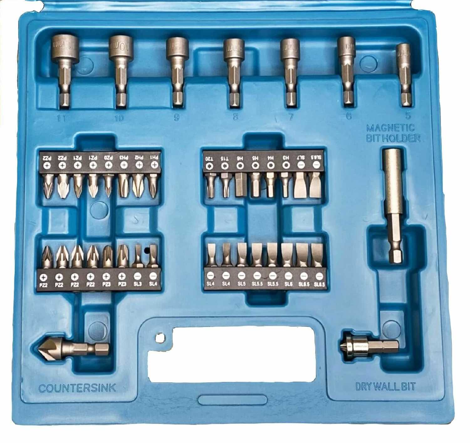 Кейс очень удобный, с фиксированными пазами для каждого инструмента. Пользователи хвалят компактное размещение, которое предотвращает потерю бит и сверл. Размеры 220х220х50 мм позволяют хранить его в небольшом пространстве. Однако некоторым тяжело вытаскивать и вставлять насадки обратно из-за плотной фиксации. В целом, это значительное улучшение по сравнению с хранением в банках или россыпью. -
