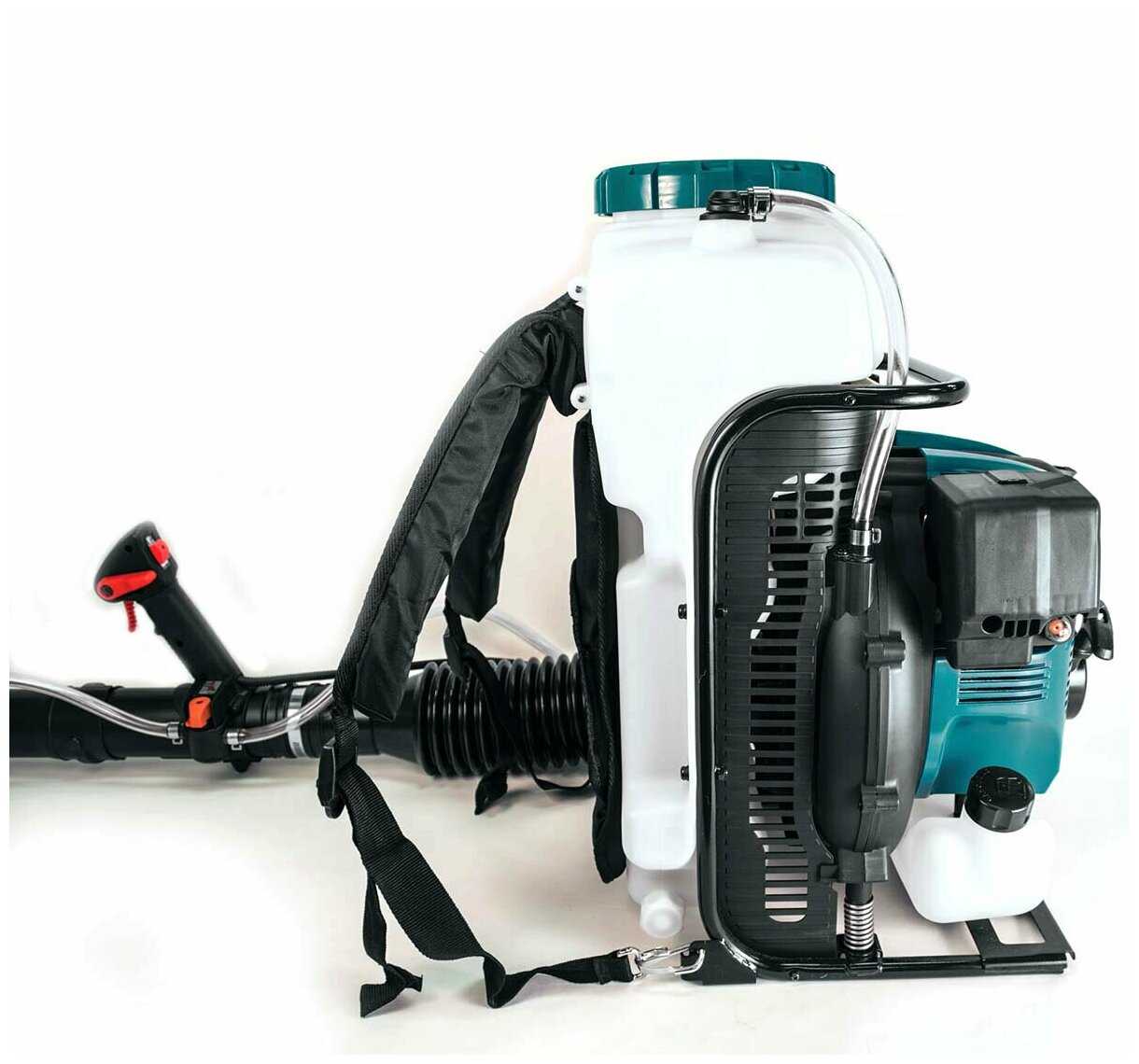 Подробная комплектация : | Опрыскиватель, Прямая труба, Верхняя форсунка, Хомут для шланга диаметром 100 мм, Хомут для шланга диаметром 76 мм, Вторая форсунка, Плечевой ремень, Емкость для топливной смеси, Набор инструментов для двигателя. |
