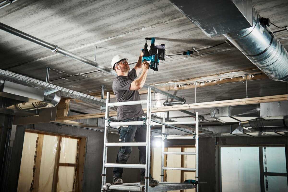 Мощный, использую в основном для отверстий в монолитном бетоне диаметром 16 мм глубиной от 300 до 600 мм. Аккумулятора 4ач хватает на 4-7 отверстий чего вполне достаточно для моих задач. К примеру до этого работал с перфом dhr202 c 3ah акб редко удавалось сделать более 1 отверстия в тех же условиях.