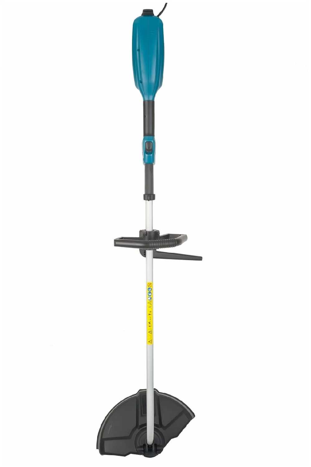 - Двигатель 1000 Вт с плавным пуском справляется с молодой травой, лопухами и мягкими кустарниками (диаметр стеблей до 1 см).