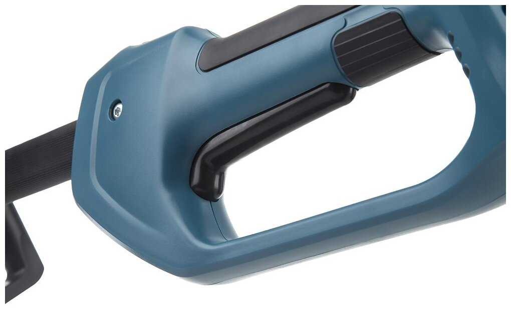 Фиксатор блокировки (стопорная кнопка) нажимается однократно, но основной курок требует постоянного удержания. У многих пользователей устаёт большой палец через 15–20 минут — проблему решают самодельными фиксаторами из хомута или верёвки. Плавный пуск снижает нагрузку на мотор. -