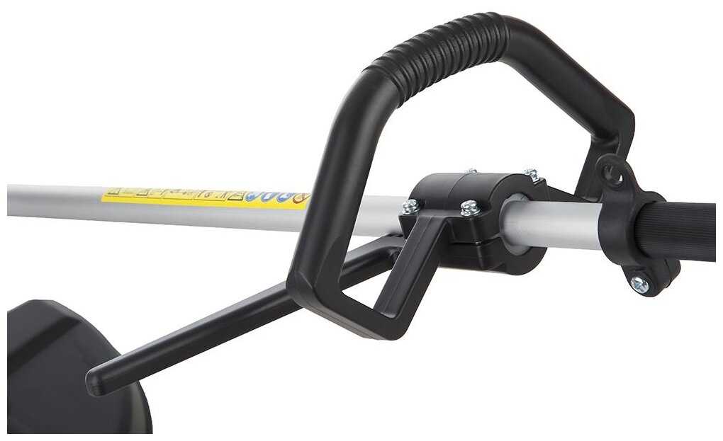 - D-образная рукоятка с резиновыми вставками и регулируемый наплечный ремень адаптируются под рост пользователя (от 160 см).
