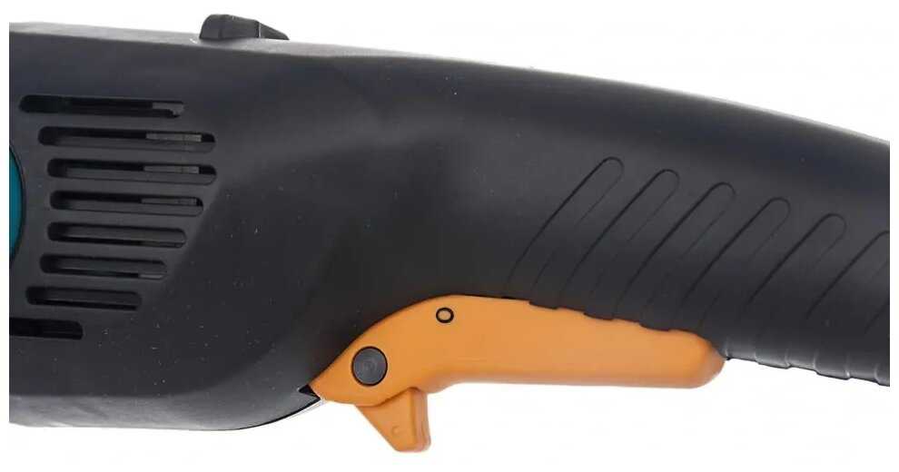 Главное, что техника оборудована мощным двигателем, устойчивым к проникновению пыли. Эти свойства должны обеспечить длительный срок службы инструмента. Диск, устанавливаемый в инструмент, должен обладать максимально 230-миллиметровым диаметром. Также есть ограничения в 6 тысяч оборотов диска в минуту. Чтобы удобно было пользоваться машиной, корпус редуктора поворачивается с шагом, равным 90-та градусов. Для точности управления предусмотрено 3 положения боковой рукоятки плюс под нагрузкой имеется электронная стабилизация оборотов диска.