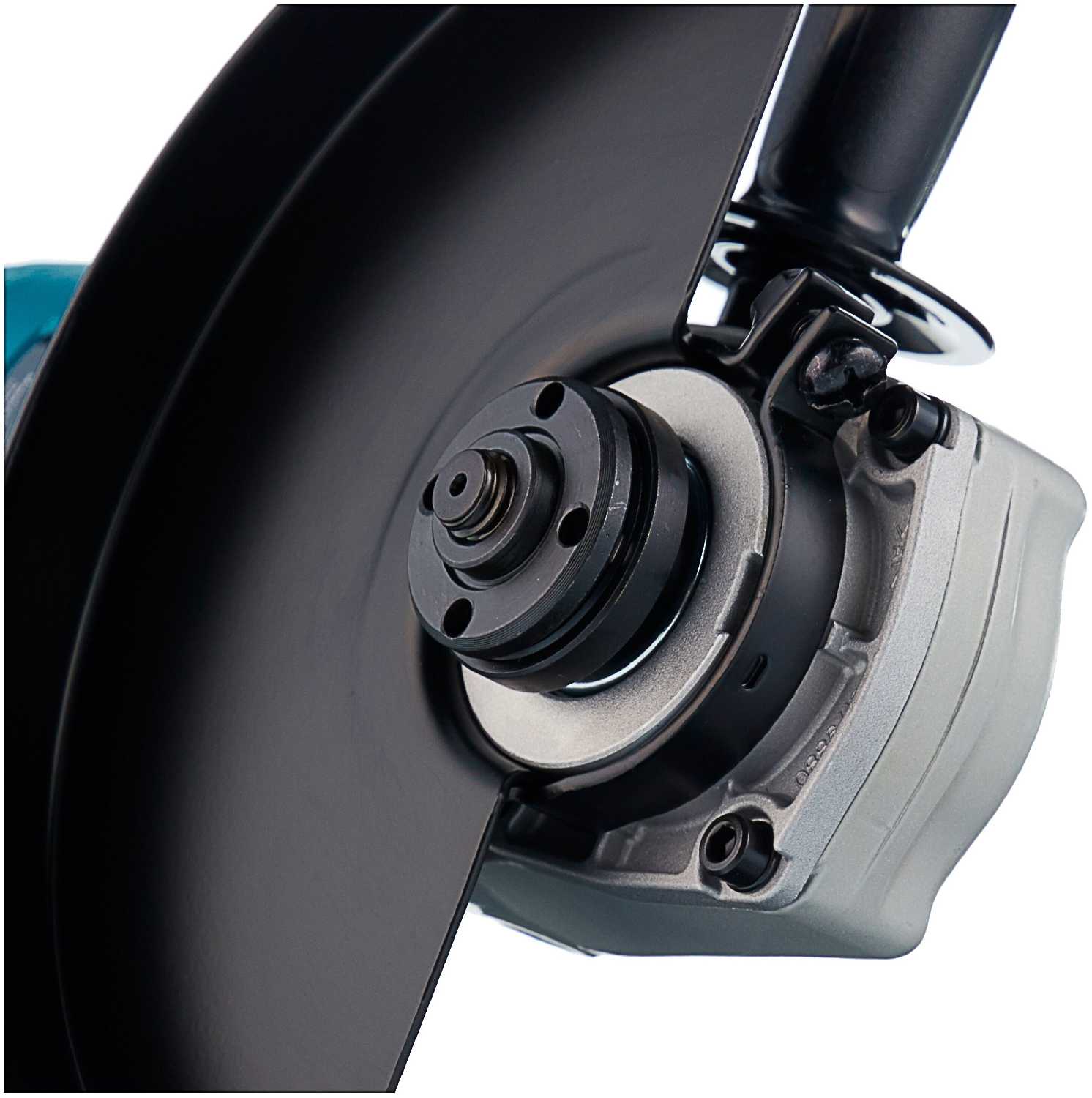 Вес (5.3 кг) — главный спорный момент: для одних это недостаток, осложняющий работу на высоте или в неудобных позициях, для других — преимущество, так как масса инструмента компенсирует вибрацию и упрощает резку. Ручка из комплекта критикуется за неэргономичность: пользователи жалуются, что ладонь упирается в защитный кожух, а резиновое покрытие отсутствует. Суперфланец (SF) упрощает замену дисков — ключ работает без закусывания, прокладки не требуются. Защитный кожух фиксируется болтом, но регулировка без инструмента невозможна, что неудобно при частой смене задач. Блокировка кнопки запуска и резиновая накладка на корпусе повышают безопасность при длительной работе.