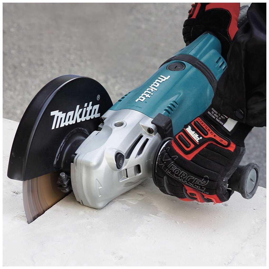 - + Приличная мощность, поворотная задняя ручка (на 90 градусов в обе стороны) позволяет сделать удобный хват, боковая виброгасящая рукоятка, легко снять диск (откручивается с малым усилием), включение-выключение с доп.курком одним движением, плавный пуск (напряжение не просаживается). Не такая и громкая для 2.6кВт. Есть какие-то доп.защиты: остановка при заклинивании диска, не стартует сама после прерывания питания, защита от перегрева.