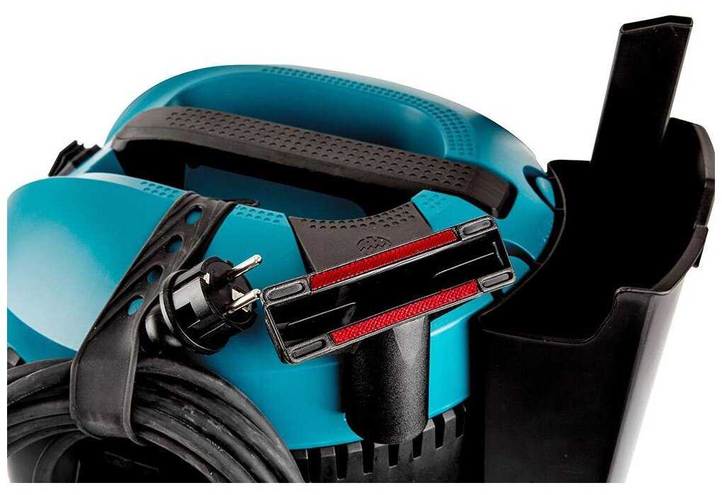 Мой первый строительный пылесос, очень понравился. Не плохая комплектация. В комплекте пару мешков-пробников: один пластиковый и один матерчатый (стирать его нельзя, крепление из бумаги). Ручка для переноски и колесики для перевозки (что есть у большинства пылесосов). Есть система очистки фильтра, но пока не понял на сколько качественно она справляется. На пылесосе есть пару креплений для насадок и одно "ушко" для крепления металлической трубки в "стоячем" положении. В инструкции описывается возможность работы на выдув воздуха, но шланг не съемный, как я понимаю нужен отдельный.