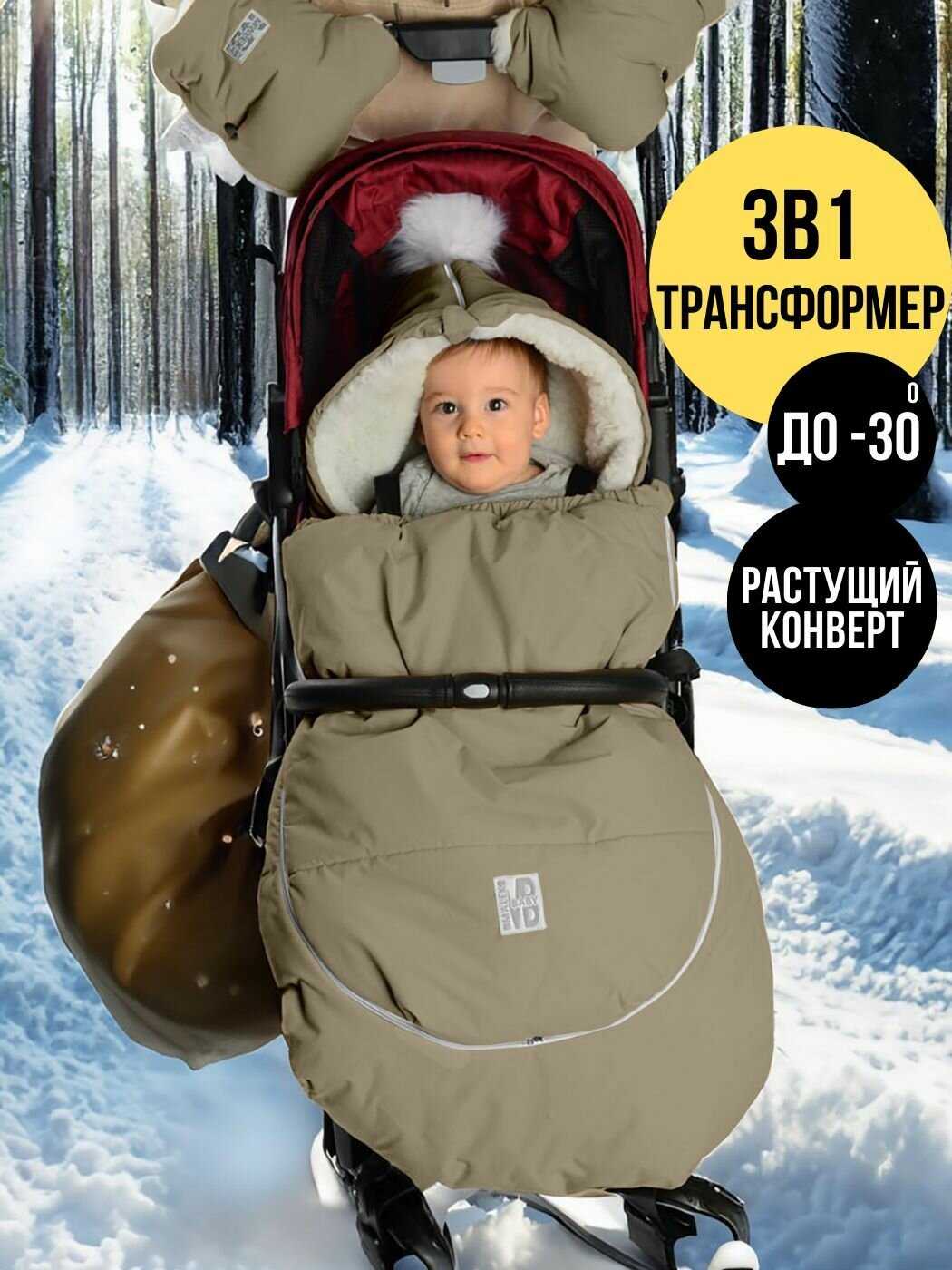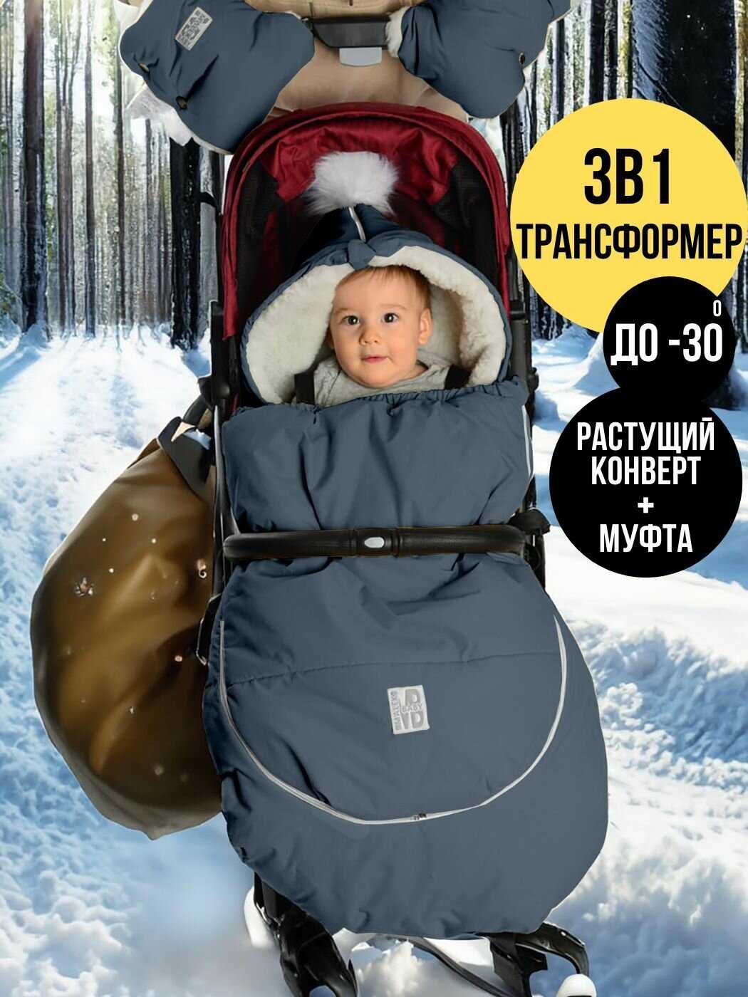 - + Большой, добротный, теплый мешок для малыша и руковички для мамы