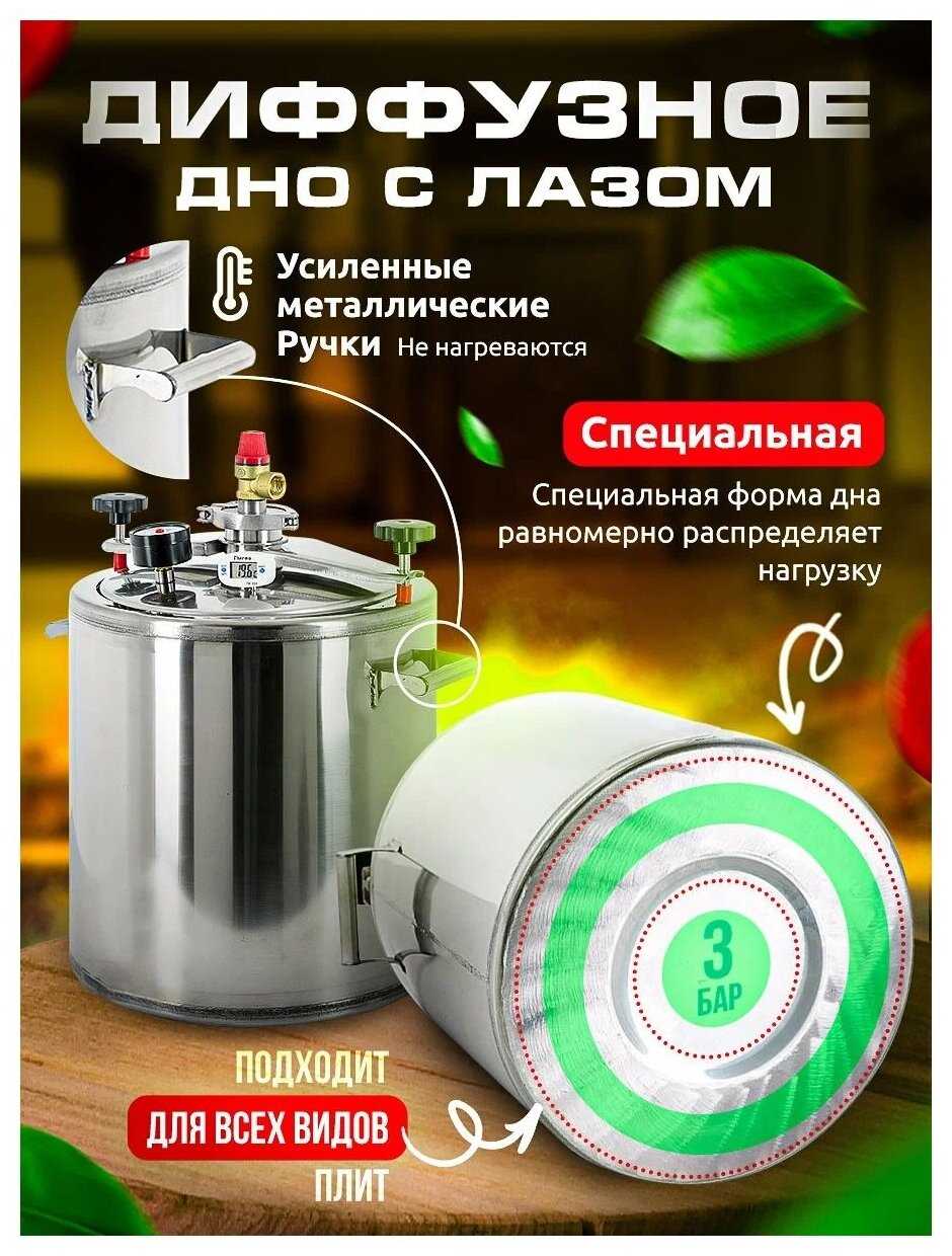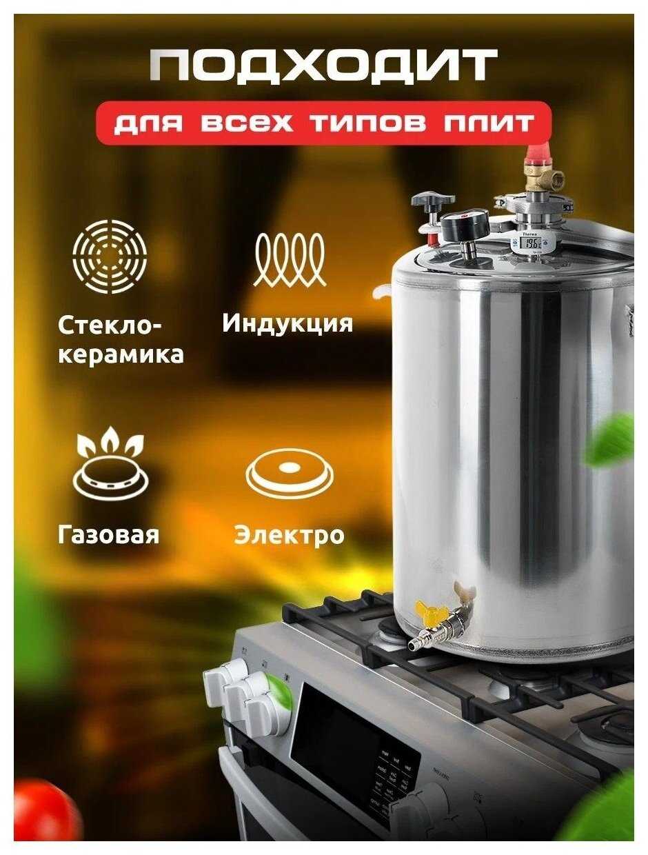 - - Дно имеет выпуклую форму, учитывая что индукционная плита у меня выдерживает 10 кг, автоклав ставится на стекло а не на раму, пришлось колхозить подкладки. Кран не встал вертикально вверх как надо, наклонил в сторону.