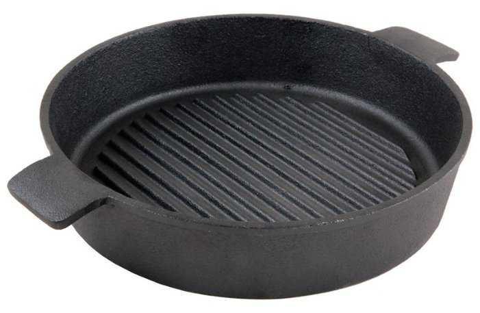 - + Отлично делает гриль. Толстая и тяжелая, греется быстро