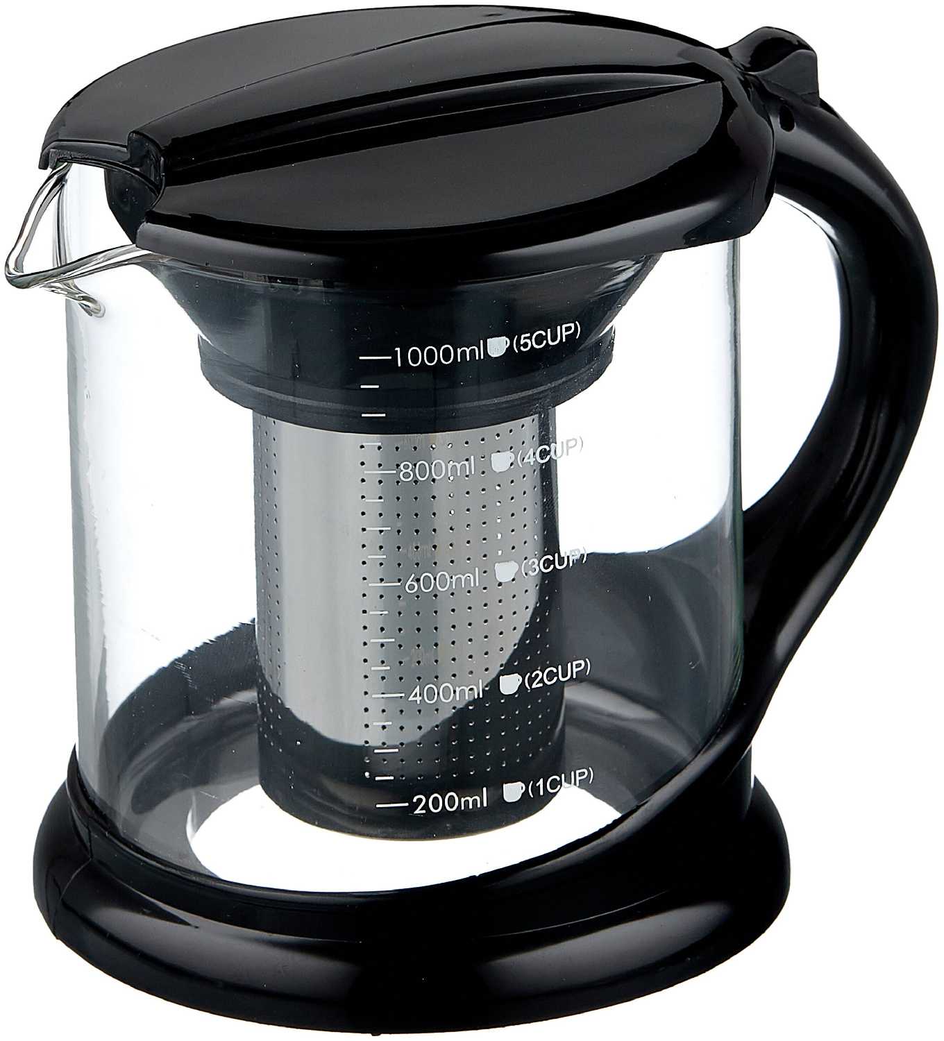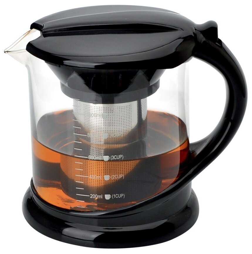 - Вместительный на 1 литр, хватает на 5 чашек, что позволяет заварить много чая за раз.