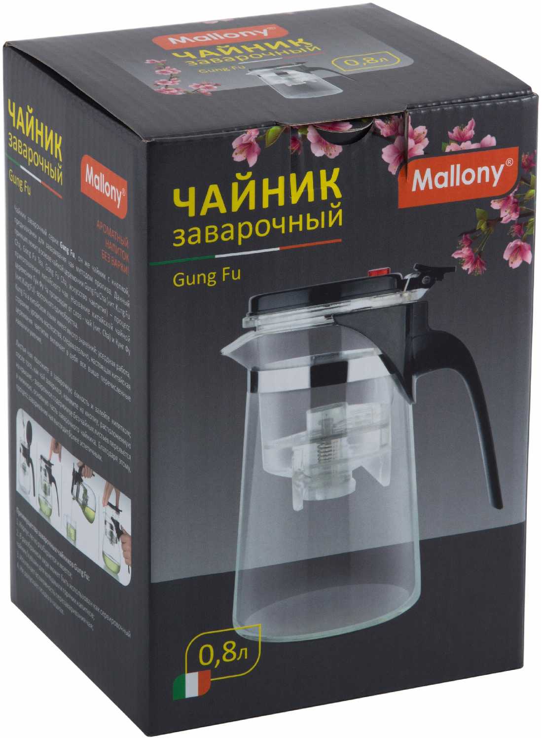 Характеристи Mallony Чайник заварочный с кнопкой серия Gung Fu, литраж - 700 мл, тм Mallony