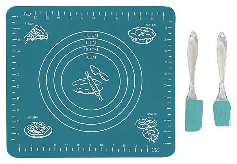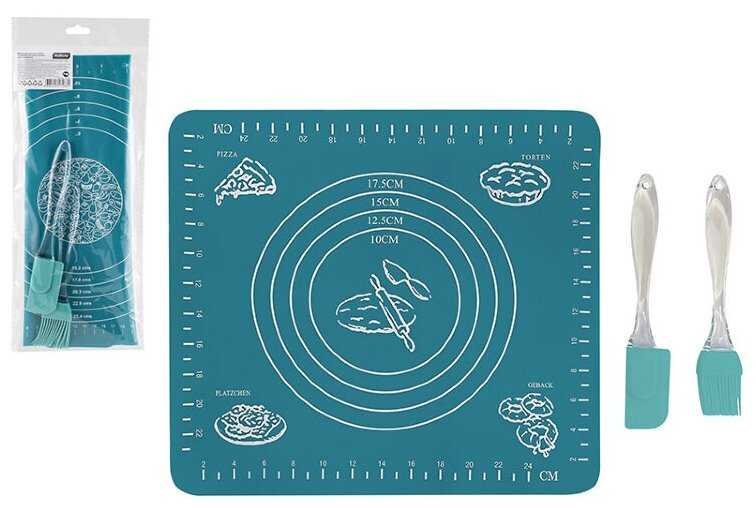 - + Коврик хорош, в мини духовки типа redmond отдельно стоящие входит хорошо, лопатка около бесполезна, кисточка нормальная. Купил второй комплект, цена качество отличные.