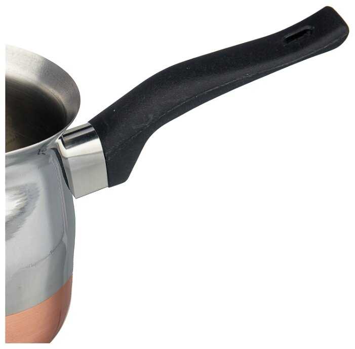 - + Ранее пользовались такой туркой. Вполне справляется со своими функциями и не лишена удобства. Две больших чашки кофе на газовой плите.